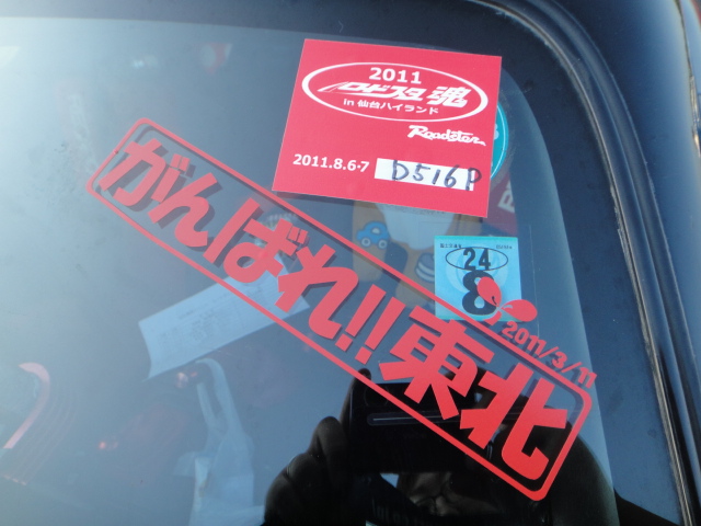 8月7日(日)ロードマスターズから5台6名で仙台まで行ってきました! 片道8時間弱…途中栃木でまさかの事故での通行止めに遭い…大渋滞(泣) どうにか抜けるも1時間ちょっとのロス。しかし、再度通行止めの所すぎ の場所から乗り、ロスをカバーしました!(皆さん朝から大変でした;) 仙台までの道のりは相当アップダウンがあり、真っ直ぐな道なのに飛ぶ! という予想以上の悪路でした。地震の影響は計り知れません…。 到着した仙台ハイランドも、レース場所までの上りは崖崩れや陥没ですご いことになっていました…。本当に開催できるまで大変であったと思いま す。一度行ってみて良かったと思っています。 到着するといくら東北とはいえ…外は炎天下!まさかの34℃!! 暑すぎる…。寝不足と暑さで皆ダウン寸前…の中の大雨!(驚) 雨の予報なしでの大雨は涼しくなったけど実行委員の方が気の毒です…。 オークションは鹿さんがまさかのクリアテール新品2,000円で落札! NB2が誰もいなくて競り合う方がいなかったようです。お買い得♪ 最後に全員で記念撮影し別れました。 水ちゃんと鹿さんはそのままおうちへ帰って行きました。お疲れ様です。 会長夫婦&高田さん夫婦は仙台に泊まり1日余裕を持って帰宅しました。 下の写真はおまけです…(笑) |