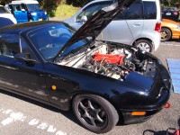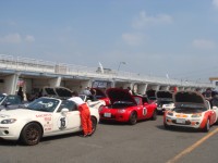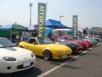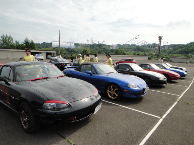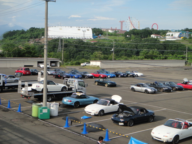 7月10日(日)ロードマスターズで夏のTRGをおこないました! まさかの外気温は最高で35℃!朝イチに皆さんにはポカリと塩ウメを配り ました。それでもポカリ1本じゃ全然足りませんでしたね;泣 オープンで走っても日差しが強く、エアコンの無い方や効きの悪い方…。 快適だったのはNCだけ…??笑 途中、駐車場に停めようとしてる最中の地震も衝撃的でしたし、茂木まで の道路も地震の影響か各所で陥没や隆起していたり…未だに大きな爪痕を 残していました。復興が早く進むよう願うばかりです。 ただ、茂木ツインリンクはたくさんのお客さんで賑わってました! 本サーキットは遠くからでしたがロードスターばかり走っていたようです し、バイクの方もたくさん走っていました。ASIMOも見れたし、チョロQ も色塗って遊んだり…歴代のバイクや車を見物したり。中にはカートに乗 った方もいらっしゃったようです。 昼食時には水城夫婦の結婚祝いを行いました♪いつもは日の出TRGで行い ますが、お二人は実家が遠いので里帰りのため出られないのでやりました。 集合撮影時に雲行きが怪しかったのですんごい特急で撮影→くじびき→講評 とやり解散って時には土砂降り&風&雷でビックリしました!笑 次回のTRGは村田さん・秋葉さん宜しくお願い致します! |