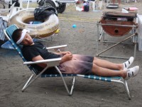 8月8日(日)千葉県館山市へバーベキュー&海水浴TRGへ☆ 天候は曇り空で時折雨がちらほら。だけど気温は過ごしやす く海では丁度良い感じ。 高速下りる間際にジジがいなくなり、いくら待てどコンビニ に来ない。 いい加減時間がたった後、自分が作った栞のコンビニ間違っ ていたことに気づくw そのコンビニで大口号がロアホースに亀裂が入り、クーラン ト液が噴いていることに気づくw 途中、目的地まで何回か停まりながらもなんとか皆の待つ 海水浴場に到着! バーベキュー・スイカ割り・海水浴・宝探し・バナナボー ト等々。 行った場所はここ1つでしたが、中身の濃ゆいツーリング になりました☆ |